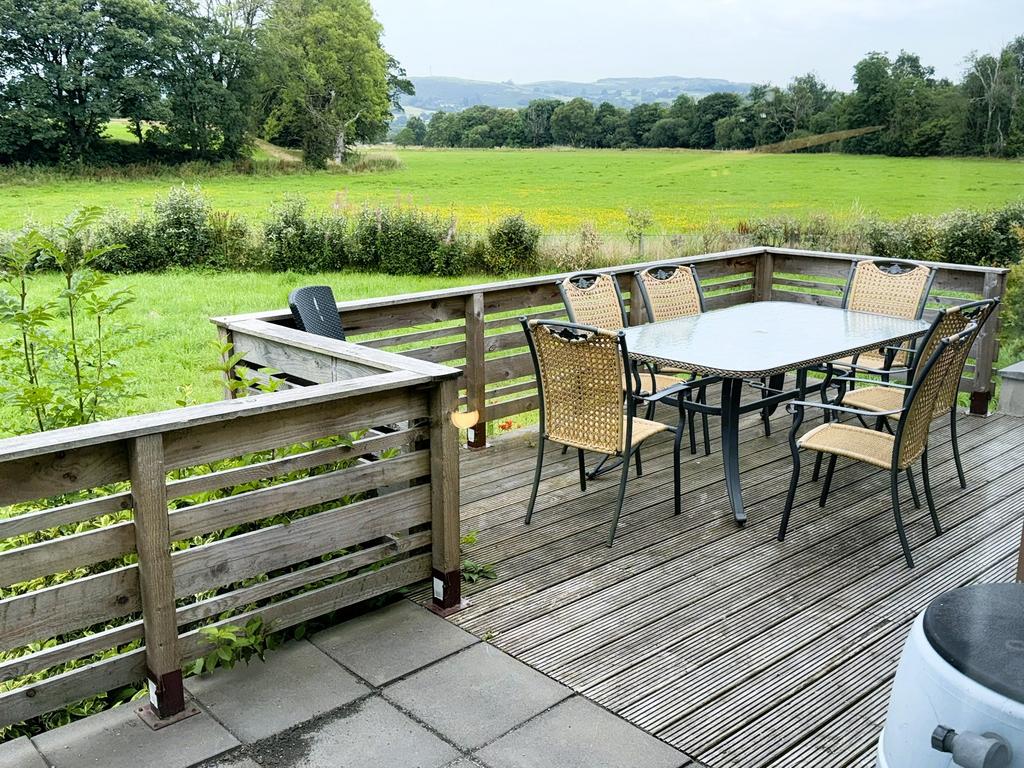 To the front of the property, there is ample off-road private parking alongside a low-maintenance front garden. An elevated patio and adjoining timber decked area lead from the conservatory, taking full advantage of the open countryside views over the neighbouring meadow farmland and extending towards the nearby rolling hills.
