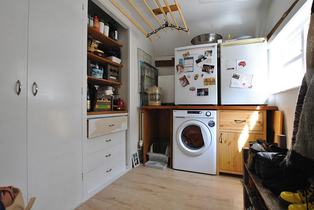 Fitted with a range of built in cupboards, shelving and drawers. Space and plumbing for washing machine with worksurface over. Wood effect flooring and window to side aspect. The room was previously a bedroom, but has recently changed use to a utility space.