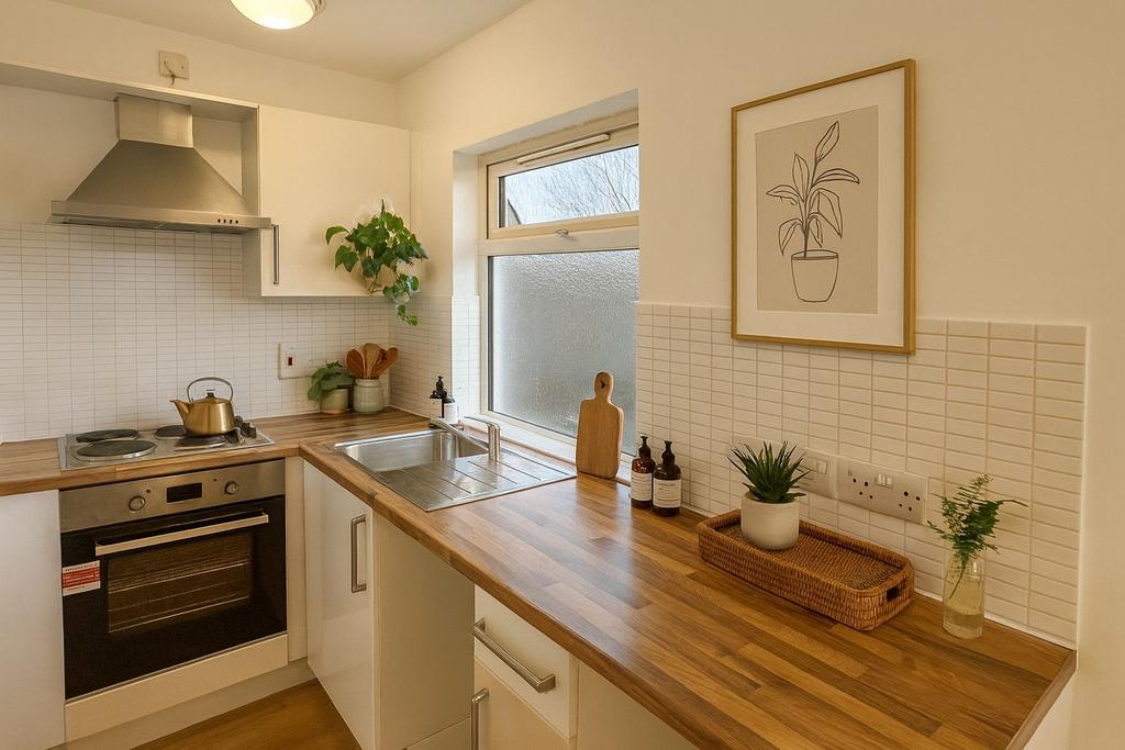 This flat is on the third floor and benefits from a spacious open plan living room and kitchen with built in oven and hob.