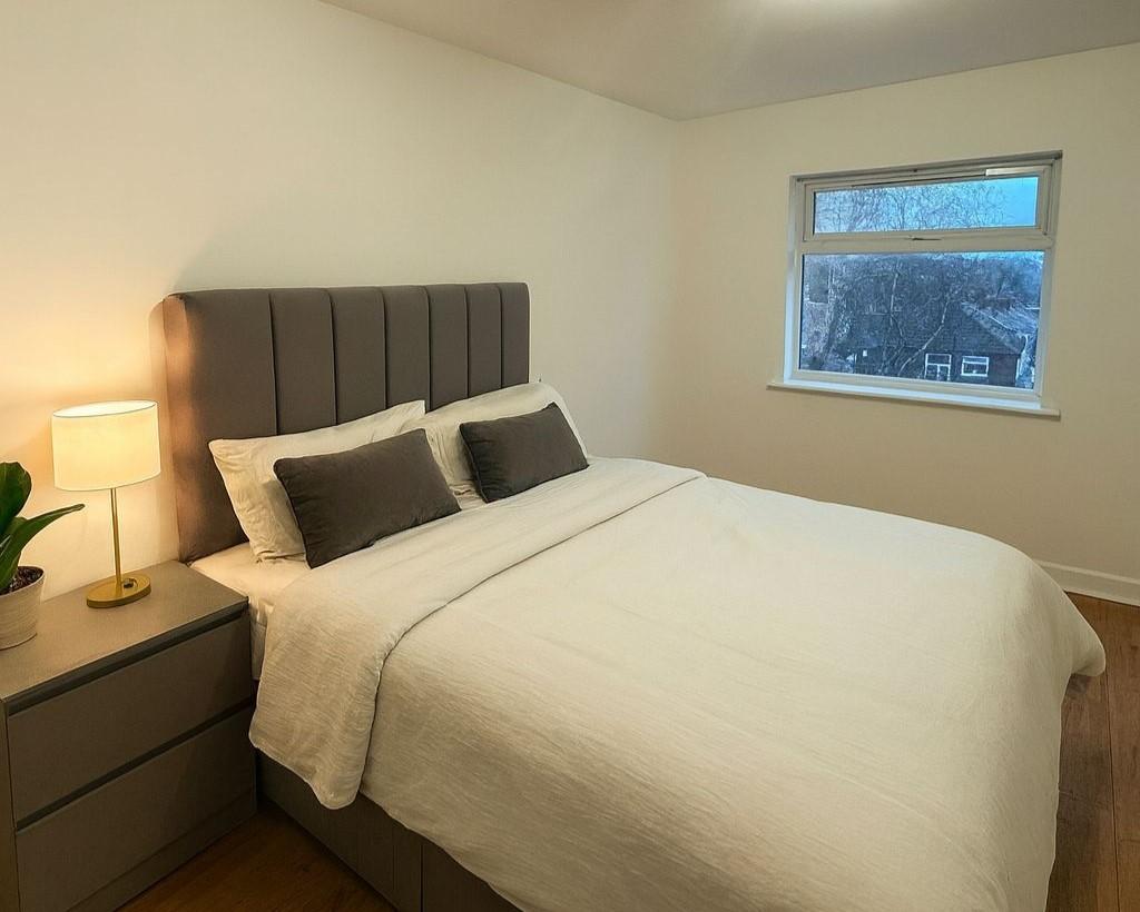 A spacious double bedroom and modern shower room.