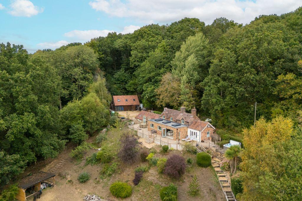 Externally, the property benefits from generous parking, a detached oak-framed triple garage with an annexe above, and the two holiday lodges, all set against a backdrop of peaceful woodland.