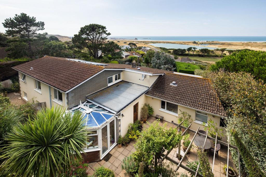 Perched above St Ouen’s Bay with panoramic sea and country views, a substantial detached property that offers , not only a great location, but great privacy as well.The mature gardens with exotic plants surround the property and screen it from all the neighbouring properties while still framing the views.