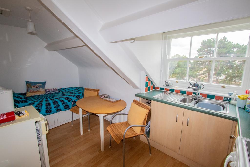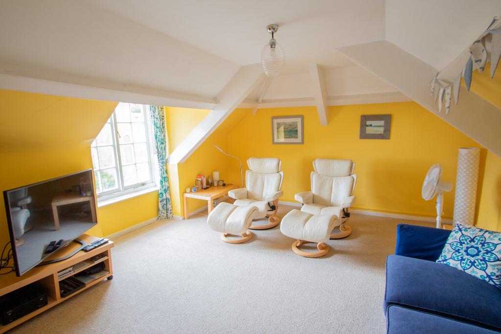 The sitting room benefits from a south-west aspect with sea views, while the fitted kitchen/breakfast room offers a practical and inviting space. The double bedroom is generously proportioned and features two large built-in cupboards. The bathroom enjoys an east-facing outlook across the Bowling Green towards Salcombe Hill and also houses the gas central heating boiler.