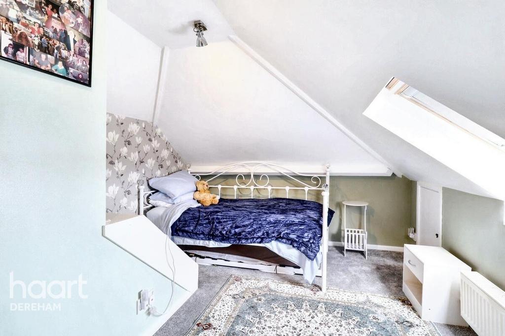 The second floor reveals a spacious fourth bedroom, tucked away at the top of the house. This room benefits from its own staircase access and would make an excellent principal suite, teenage bedroom, guest room, or home office. There is also a dedicated storage area on this level, ideal for seasonal belongings or potential conversion into an en-suite or walk-in wardrobe, subject to the necessary permissions.
