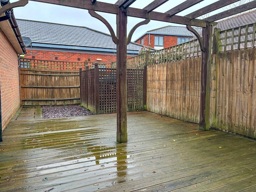 To the front of the property is a paved and slate chipped garden with a block paved driveway that gives access to the garage. A gate leads into the garden which is predominantly decked with a pergola, being fence enclosed.