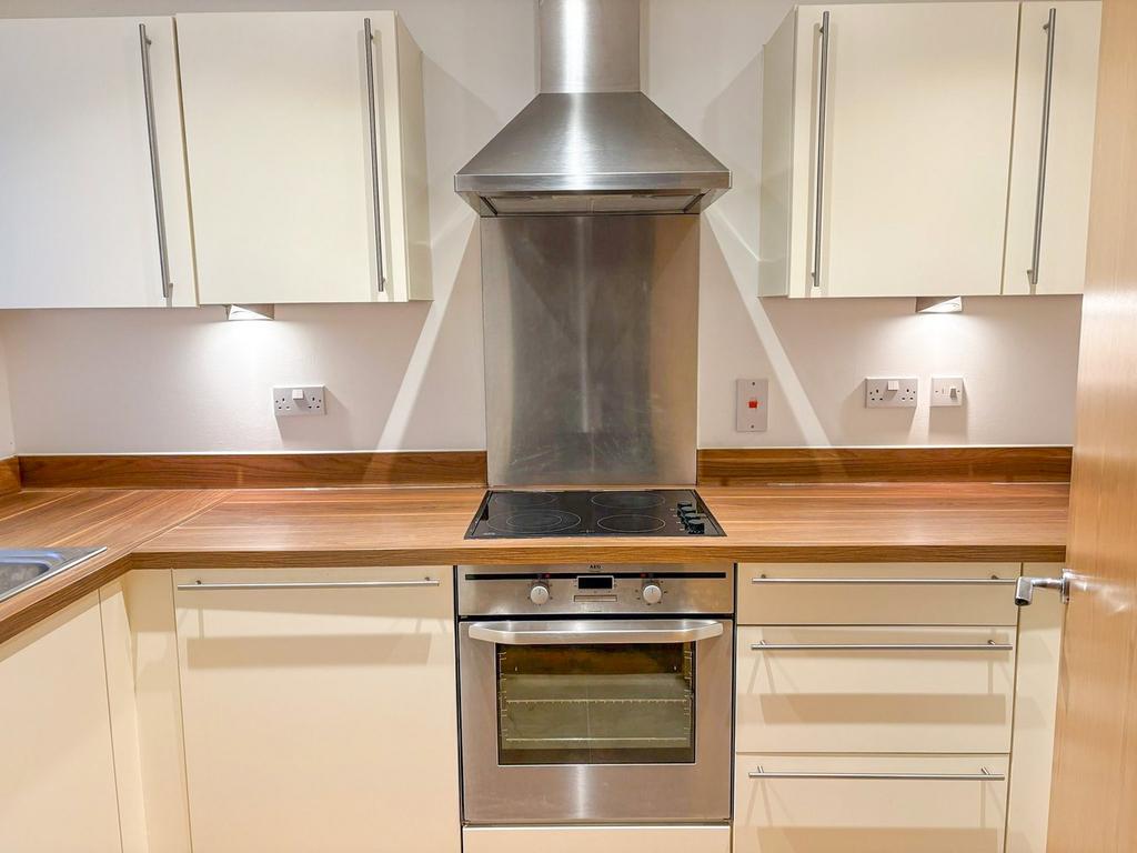 10' 6" x 6' 3" (3.20m x 1.91m) Window to front, tiled floor, recessed lighting and fitted with a range of modern base and wall mounted kitchen cabinets including cupboards and drawers with integrated fridge/freezer, dishwasher and washer dryer. There is a working surface that incorporates a four ring ceramic hob with electric cooker below and extractor fan above and a one and a half bowl stainless steel sink with mixer tap and drainer.