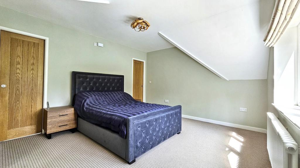 BEDROOM 1 with fitted carpet, front window with views, radiator, nine power points, large walk in wardrobe and door to:-
