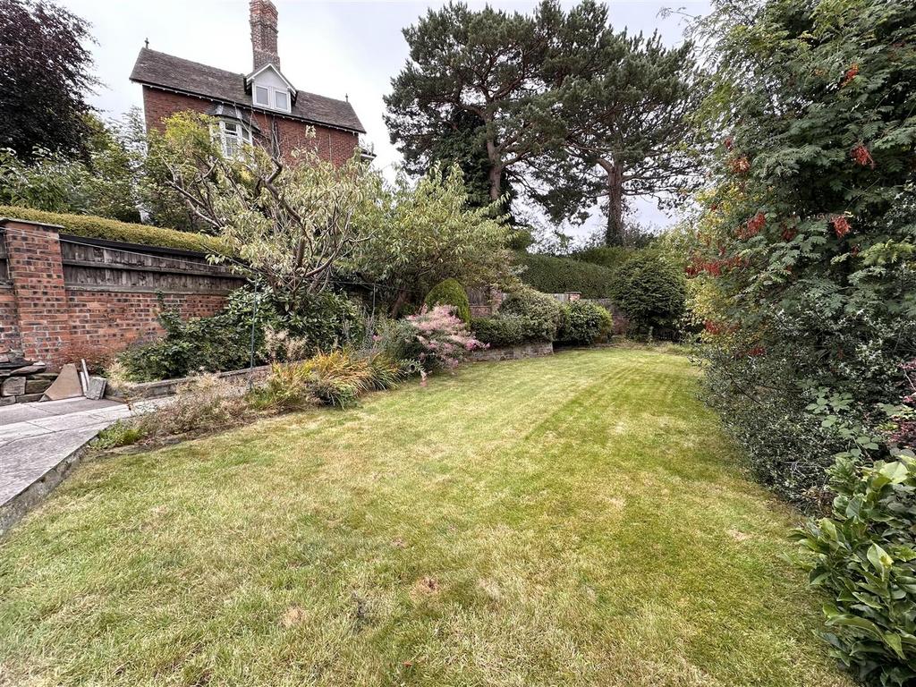 Rear Gardens - Flagged patio area, adjoining spacious lawns with mature trees and shrubs. Flagged path leads to gated access to the rear. Cold water tap.