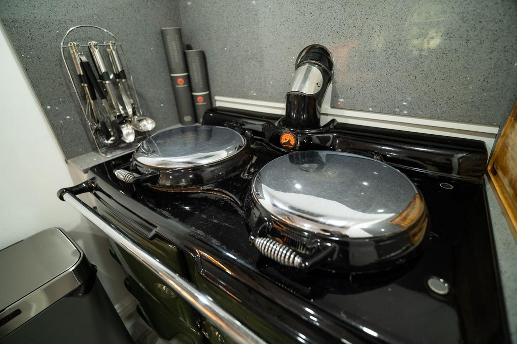 Bespoke Kitchen – Dove grey Shaker cabinetry, quartz worktops, Lusso Italian boiling/filtered tap, and premium AEG/Bosch appliances