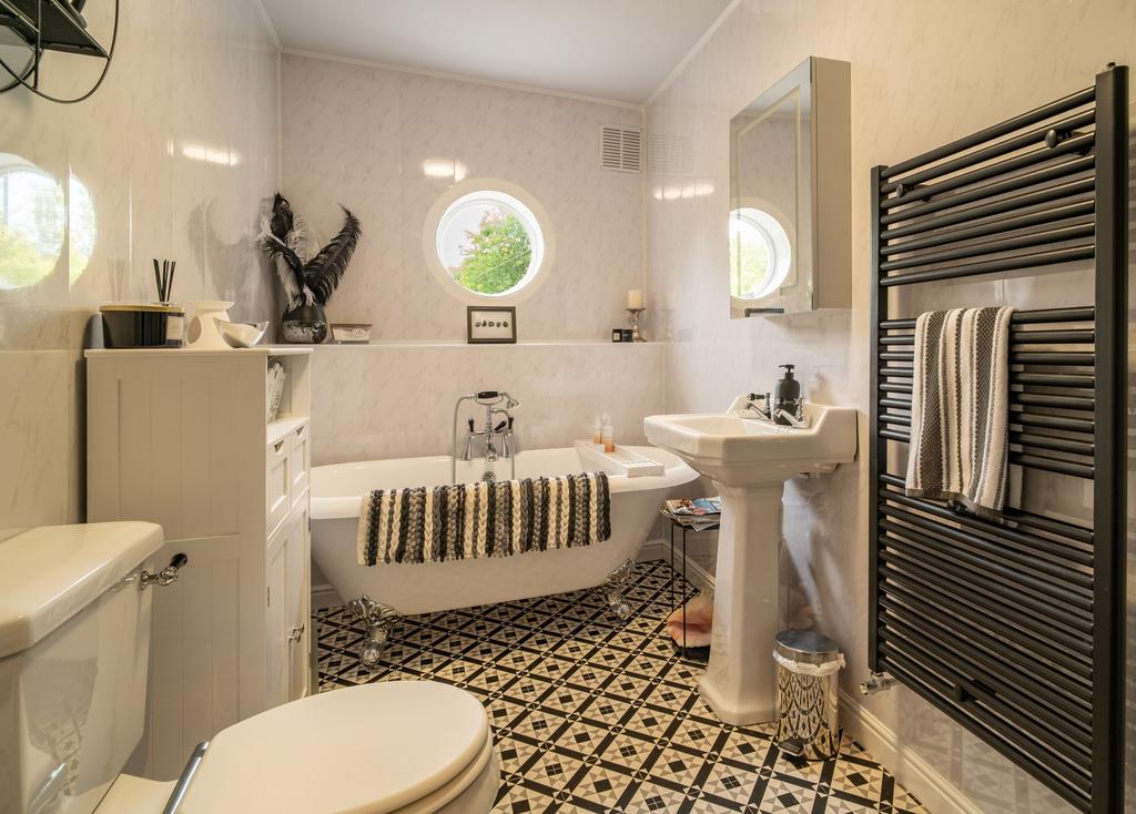 Family Bathroom – Four-piece suite with bath and low-level shower, ideal for busy mornings or evening relaxation