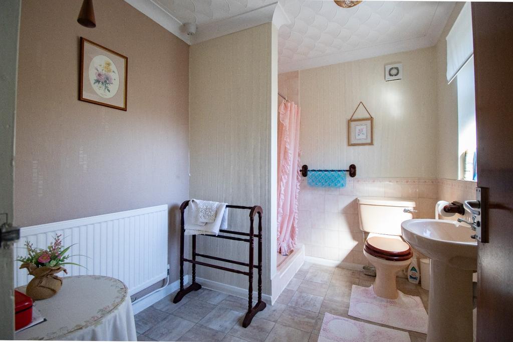 This individual detached bungalow extends to approximately 1,521 sq. ft. and offers versatile accommodation, ideally suited to families or those looking for a generous single-storey home. The property is set back from the road and occupies a particularly good-sized plot, with open paddock views to the rear creating an attractive semi-rural outlook. Whilst some elements of the interior would benefit from updating, the bungalow has clearly been well cared for and remains in very good condition, meaning a new owner could move straight in and gradually modernise to taste. The heart of the home is a superb lounge/diner, a bright and inviting space with two large bay windows which fill the room with natural light and provide a lovely aspect across the front. This spacious reception area comfortably accommodates both sitting and dining furniture, making it a highly sociable space for family life and entertaining. Adjoining the lounge/diner is the kitchen, which is fitted with a range of units and provides access into a useful conservatory. The bungalow offers five bedrooms in total, arranged around the central hallway. The principal bedroom features an en-suite shower room, while the four further bedrooms provide flexibility for family living, home working, or guest accommodation. The main bathroom and a separate cloakroom complete the internal accommodation, ensuring the property is well-equipped for everyday family needs.