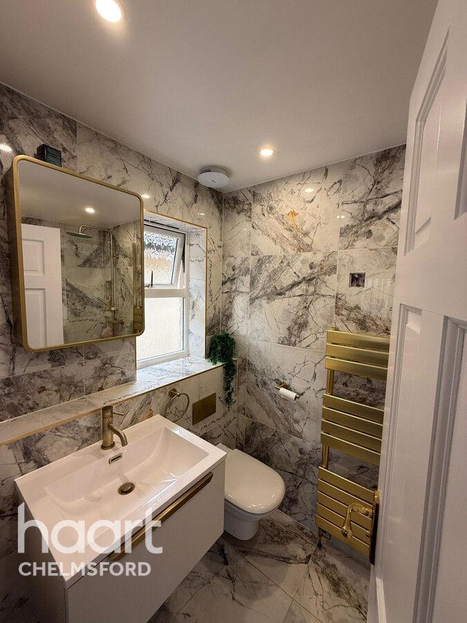 Ceiling smooth, obscure double-glazed windows to side aspect, vanity wash hand basin, low-level WC, heated towel rail and fully tiled.