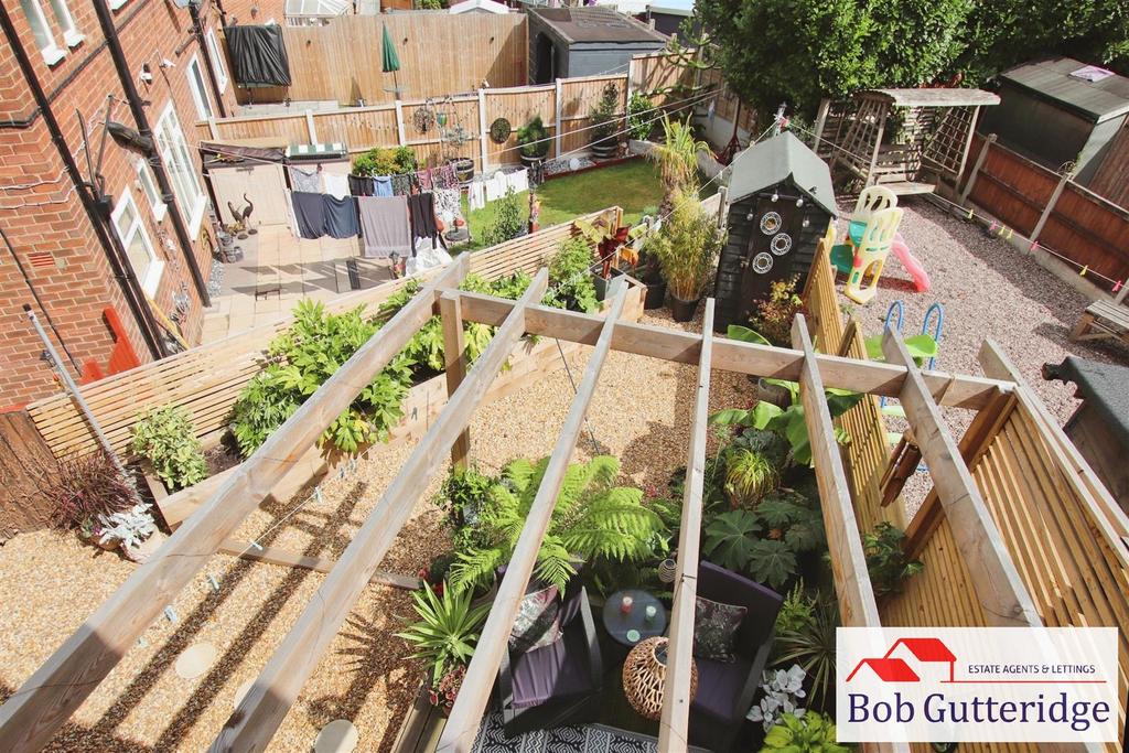 Enclsoed Rear Garden - Bounded by concrete posts with timber/concrete panels, a decked area providing patio and seating space along with offering a good degree of privacy, limestone chippings for low maintenance, additional patio area, raised railway sleeper beds with mature shrubs and plants plus a timber garden shed providing ample domestic external storage space.