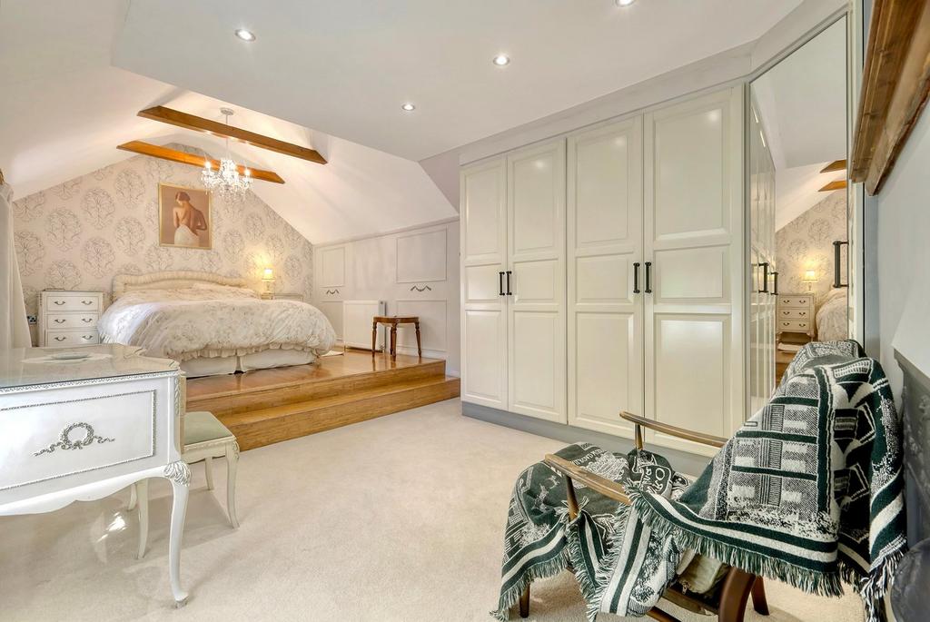 Upstairs, the cottage offers a generous principal bedroom with built-in wardrobe, a comfortable second bedroom, and a modern shower room, all set beneath the characterful roofline of this historic home.
