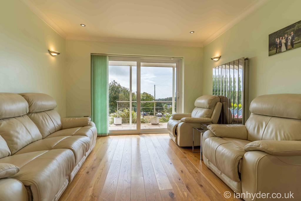 Feature room with double glazed sliding patio doors to the front elevation with far reaching views. Further double glazed patio doors to rear elevation overlooking and accessing the garden. Recessed ceiling spotlights, radiators, solid oak flooring. Feature recessed remote controlled fire. .