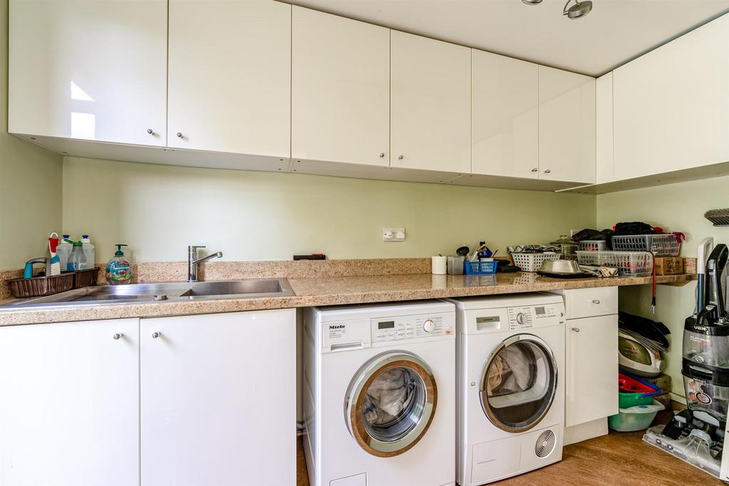 The kitchen/breakfast room is extensively fitted out with hand built wooden units, a contemporary 'Mistral' solid worktop with double bowl sink and drainer. There are a large number of base and full height wall units, quality appliances include three separate 'Miele' hobs, induction, ceramic and gas, with concealed extractor above. There is a 'Miele' heating drawer and two matching split level ovens. A large corner cupboard with bespoke curved doors reveals a large pantry and under stairs cupboard. There is ample space for further appliances and a breakfast table, a side door provides access to the yard.