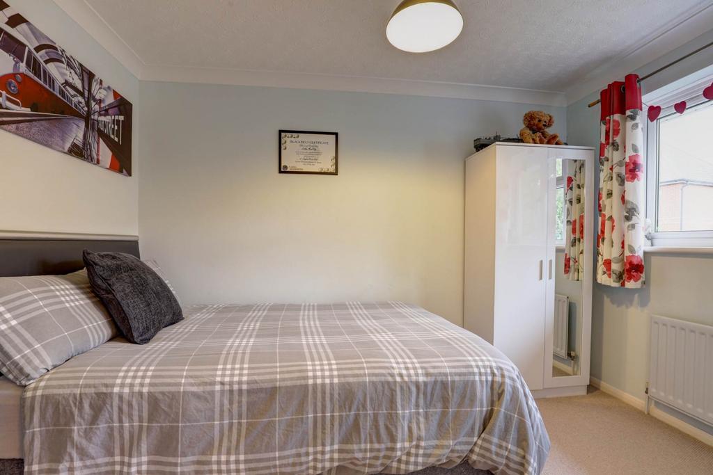 Upstairs, the accommodation continues with four bedrooms, including a comfortable principal room with built-in storage and soft neutral tones. The bathroom is neatly finished with tiled walls and a clean, functional layout.