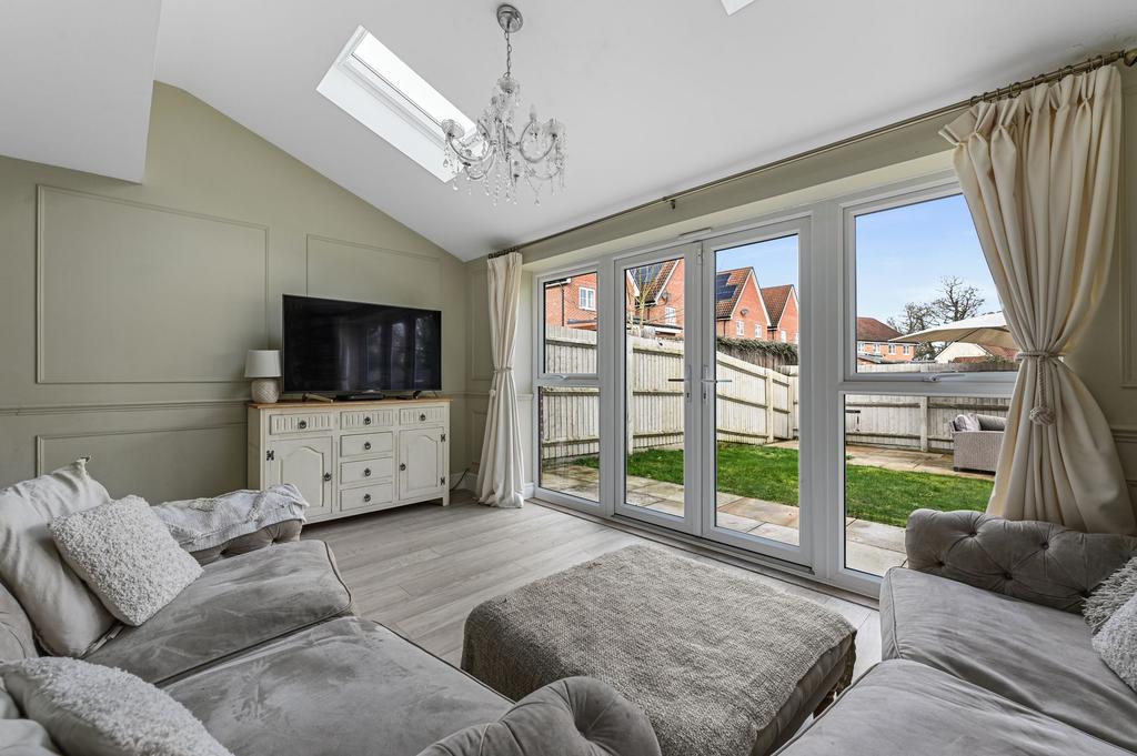 A super stylish three bedroom modern mid-terraced family home providing contemporary living including expansive open-plan kitchen/dining/reception room, additional lounge, three bathrooms, attractive garden and driveway all within highly sought-after Broomfield.