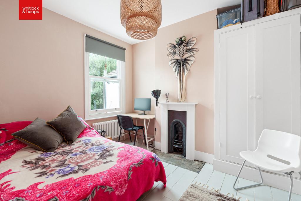 BEDROOM 3 Sash window, feature fireplace, fitted double cupboard, radiator, floorboards.