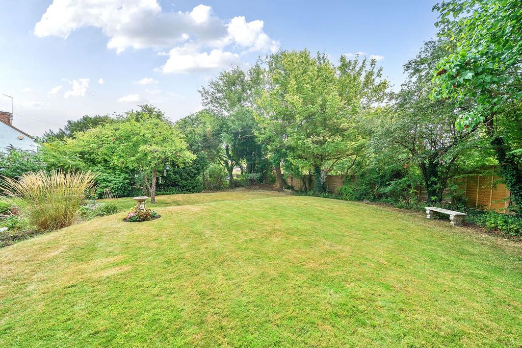 The house stands within a plot measuring approximately 0.27 acres, with mature gardens wrapping around all sides. The grounds are notable for their terraced lawns, believed to be the remains of ancient earthworks, and include five apple trees, plum, pear, and cherry trees, along with vegetable beds, a potting shed, and a greenhouse. There is also an outside tap.