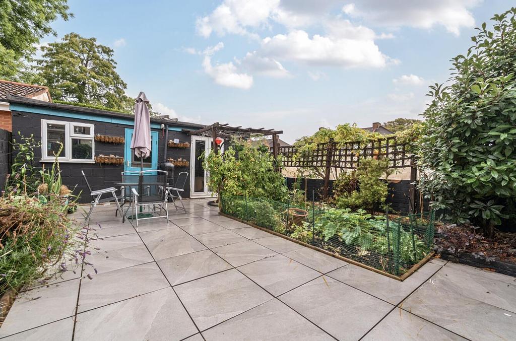 GARDEN: 25Ft Approx., (8m) (not measured), concreted paved patio, boarded with flower and shrub beds and space for vegetable patch.