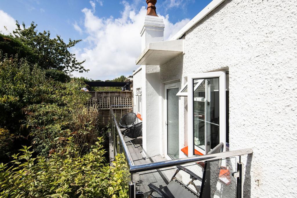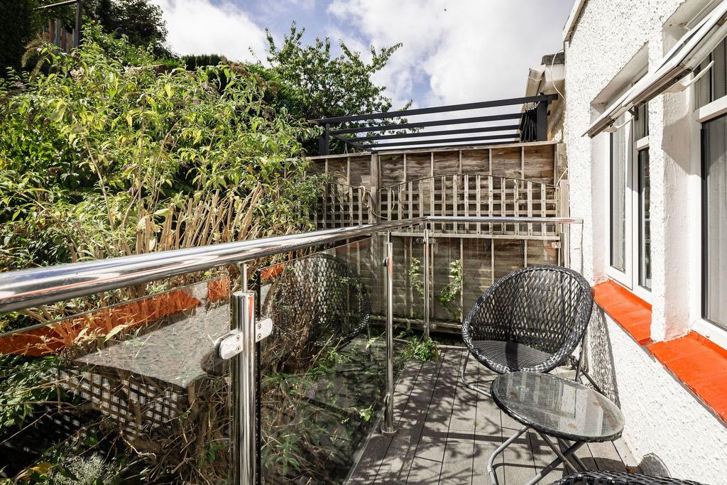 The property has outside space in the form of a small terrace on the lower level and balcony on the upper level.