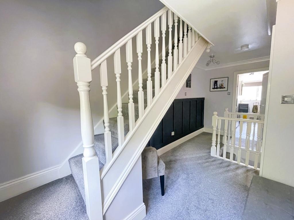 Wood effect flooring. Carpet stairs rising to first floor. Doors leading to lounge and kitchen.