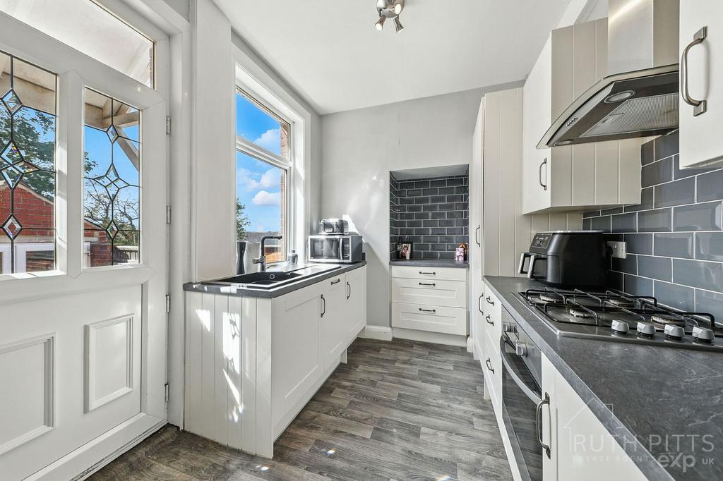 Internally, the property boasts a welcoming entrance hall leading to a spacious lounge with a feature fireplace, perfect for cosy evenings. The open-plan kitchen offers plenty of space for cooking and flows seamlessly into the dining area, which benefits from patio doors leading directly to the garden—ideal for indoor-outdoor living and entertaining. Upstairs, you’ll find three bedrooms all of which are light-filled, and a modern four piece family bathroom. Externally, the property enjoys a large, well-maintained garden with a lawned area, raised patio and a brick built outbuilding, perfect for outdoor entertaining or relaxing. The side gated access leads to the large driveway at the front, providing ample off-road parking and a further side garden.