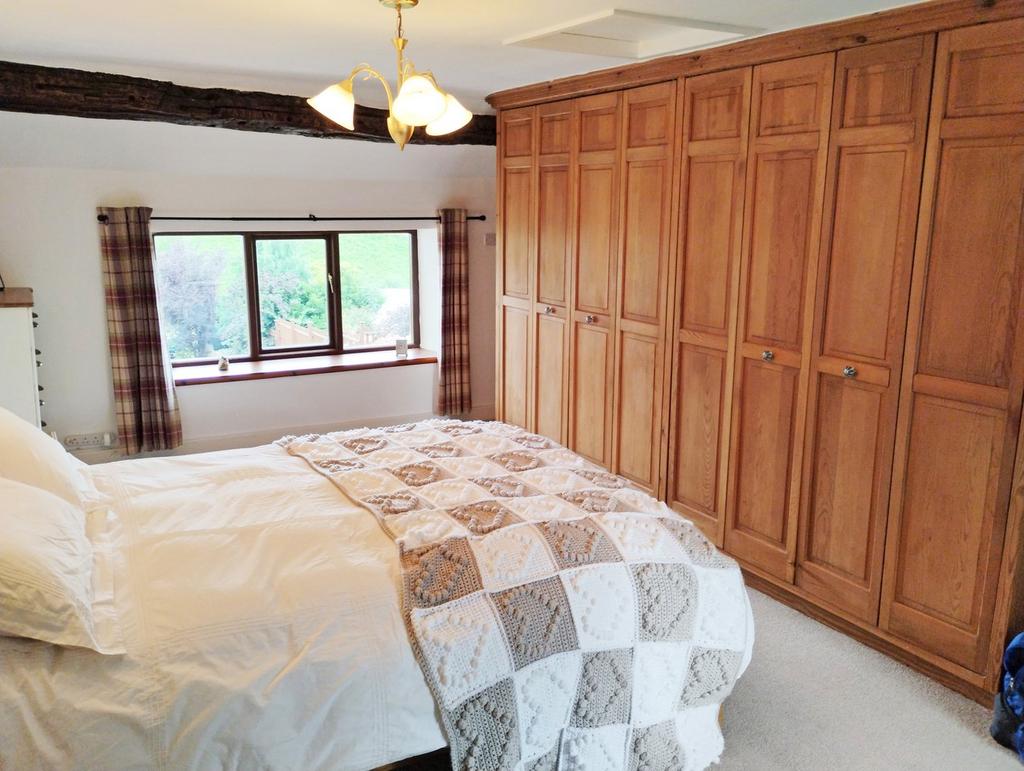 15’4” 8’2”(4.67m x 2.49m)Recessed vanity wash basin with tiled splash back, built in wardrobe cupboard, exposed beams, large window with low sill, radiator, center light.