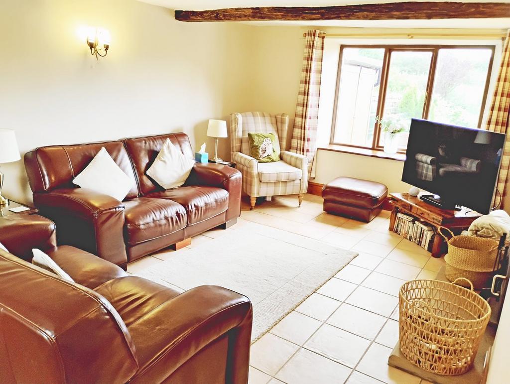 18’3” x 11’6”(5.56m x 3.51m) Fireplace housing Multi fuel stove, dual aspect windows, exposed beams, tiled flooring. TV point, built in wall cupboard, wall lights, radiator, Co2 alarm.