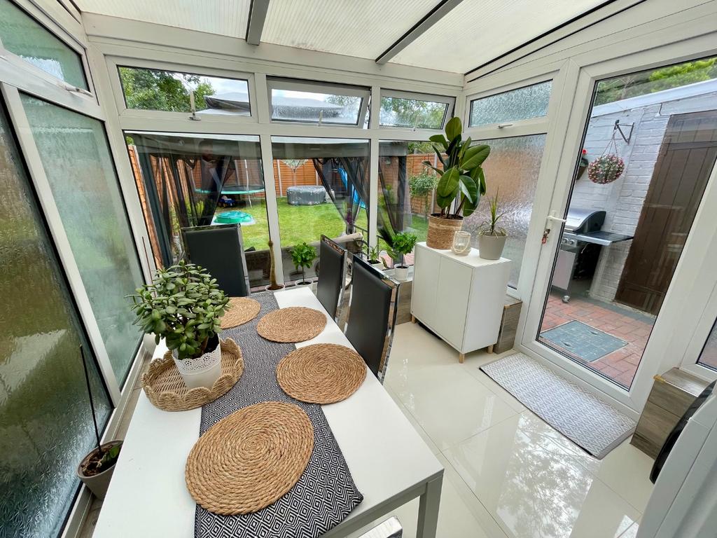 Upon entering, you are greeted by a welcoming atmosphere that permeates throughout the well-presented interiors. The ground floor features two versatile reception rooms, one of which is currently utilised as a comfortable third bedroom, offering flexible living arrangements to suit your specific needs. This adaptability is a significant advantage, providing options for a dedicated dining room, a home office, or indeed, an additional sleeping space.The heart of this home is undoubtedly the refitted kitchen, a contemporary and stylish space designed for both functionality and aesthetic appeal. Equipped with modern appliances and ample storage, it provides an inviting environment for culinary pursuits and family meals. Adjacent to the main living areas, a bright and airy conservatory extends the living space, offering a tranquil spot to relax and enjoy views of the garden, regardless of the weather. This additional room is perfect for a sunroom, play area, or a quiet reading nook. Upstairs, you will find two generously proportioned bedrooms, each offering comfortable accommodation and ample natural light. These rooms are served by a well-maintained family bathroom, ensuring convenience for all residents. The property's layout is thoughtfully designed to maximise space and comfort, making it a truly lovely starter home. Externally, the property truly shines. A private driveway provides off-road parking, a highly desirable feature in this popular residential area. To the rear, a large garden awaits, offering a fantastic outdoor space for recreation, gardening, or entertaining guests. The generous size of the garden provides ample scope for future landscaping projects or the addition of outdoor structures, subject to necessary permissions. This private oasis is perfect for summer barbecues, children's play, or simply unwinding after a long day.