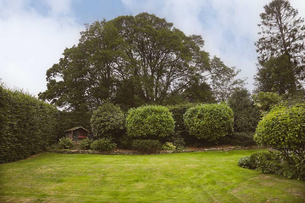 Approached from a quiet, tree-lined road, the house sits behind timber gates with a broad brick-paved driveway providing ample parking and access to the garage. To the front, a formal lawn is edged by landscaped borders and overlooked by a paved courtyard terrace, tucked between the garage and entrance hall. Sheltered and enclosed, it offers an ideal spot for morning coffee or a quiet moment outdoors. A second stone-paved terrace extends along the side of the house, accessed directly from the open-plan kitchen and family room. This larger area is well suited to summer dining and entertaining, with ample space for seating and a pleasant outlook across the gardens. Mature trees, clipped hedging and carefully curated beds enhance the sense of privacy, creating a peaceful and beautifully composed outdoor environment in a remarkably central setting.
