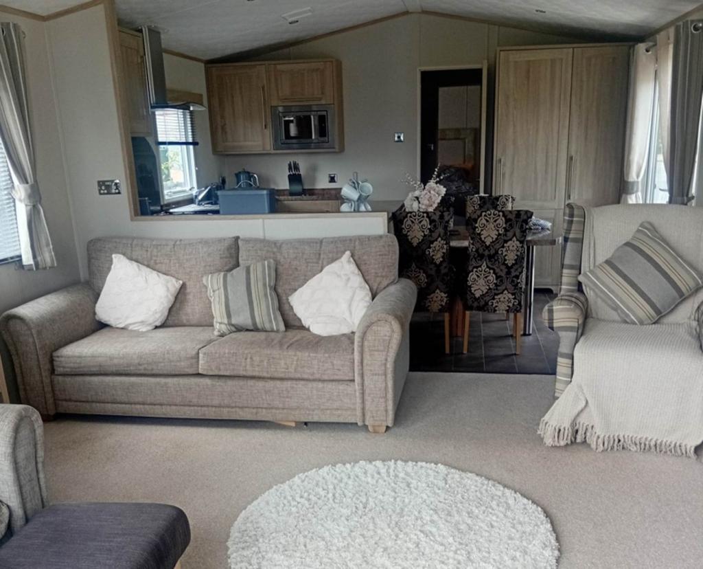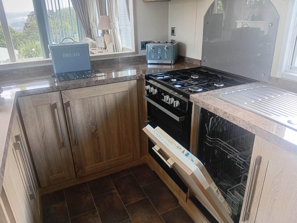 Entering the holiday home from your large decking, you are welcomed into the open plan living, dining and kitchen area. The living room is located at the front of the lodge, with double doors opening out onto your decking .The lounge enjoys sofa with separate chairs, a coffee table, media unit, electric fireplace. Opposite is the kitchen, configured in a U' shape. Benefits from cooker, fridge freezer and integrated microwave, built in Dishwaher as well as plenty of storage and ounter space. At the rear of the holiday home is the master bedroom, which also benefits from an ensuite WC and a full-size wardrobe. There is also a twin room and a family shower room with WC.