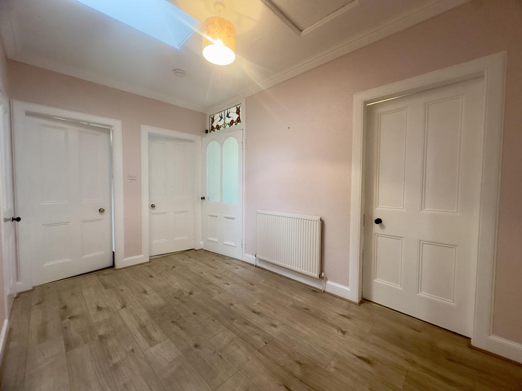 First floor: Large welcoming hallway, lounge with dual aspect windows and sea views, fitted kitchen with appliances, three bedrooms and bathroom with bath and separate shower cubicle.