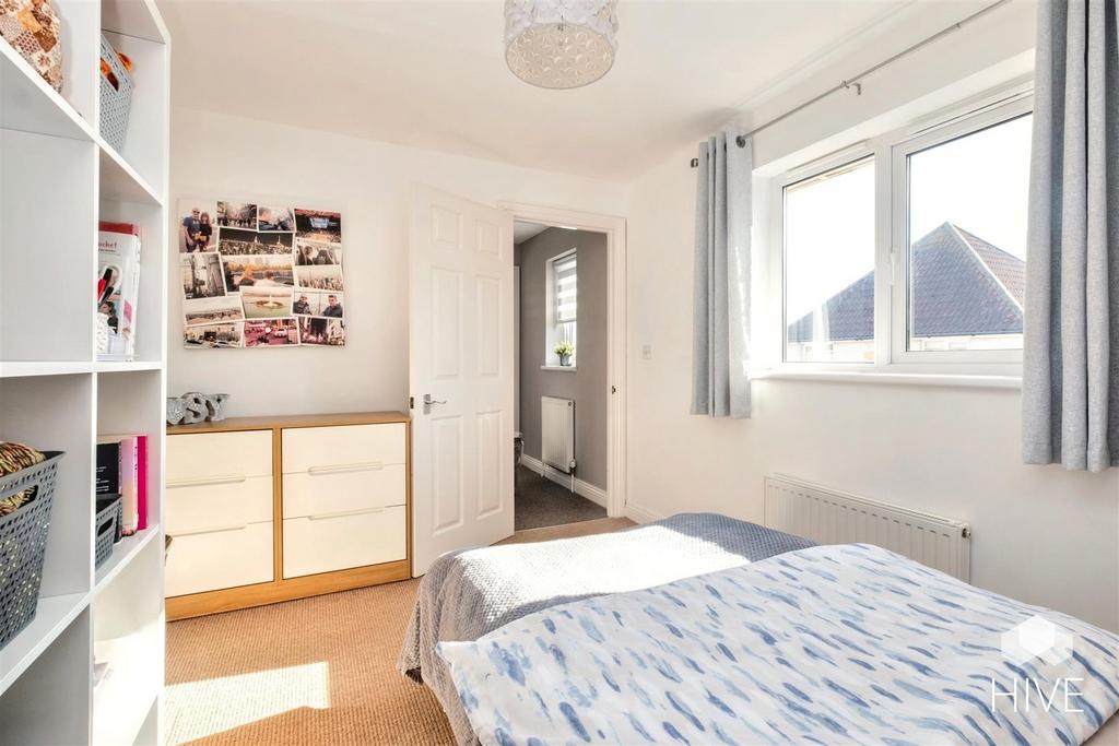 Upstairs, you’ll find three generous double bedrooms. The principal bedroom enjoys sea views from its front aspect, complemented by a recently updated en-suite shower room. Bedroom two overlooks the rear garden, while bedroom three, also front-facing, provides another spacious double room ideal for a child’s bedroom or guest space. A modern family bathroom completes the first floor, featuring a bath with shower over.