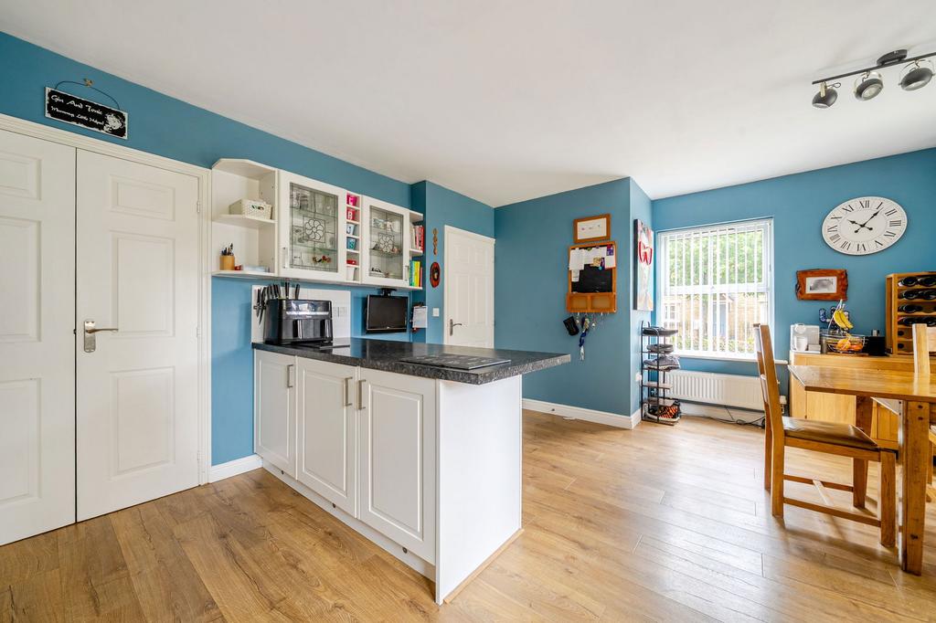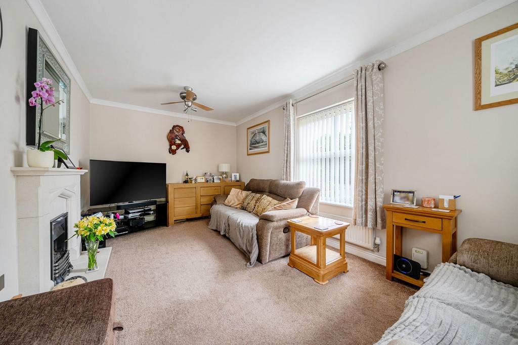 Step through the front door into a welcoming hallway, complete with a downstairs cloakroom, before flowing into the inviting living room. With its stone fireplace and inset gas fire as a focal point, this is the perfect space to curl up on the sofa, enjoy a movie night, or gather with friends – brightened by dual-aspect windows that bring light throughout the day.