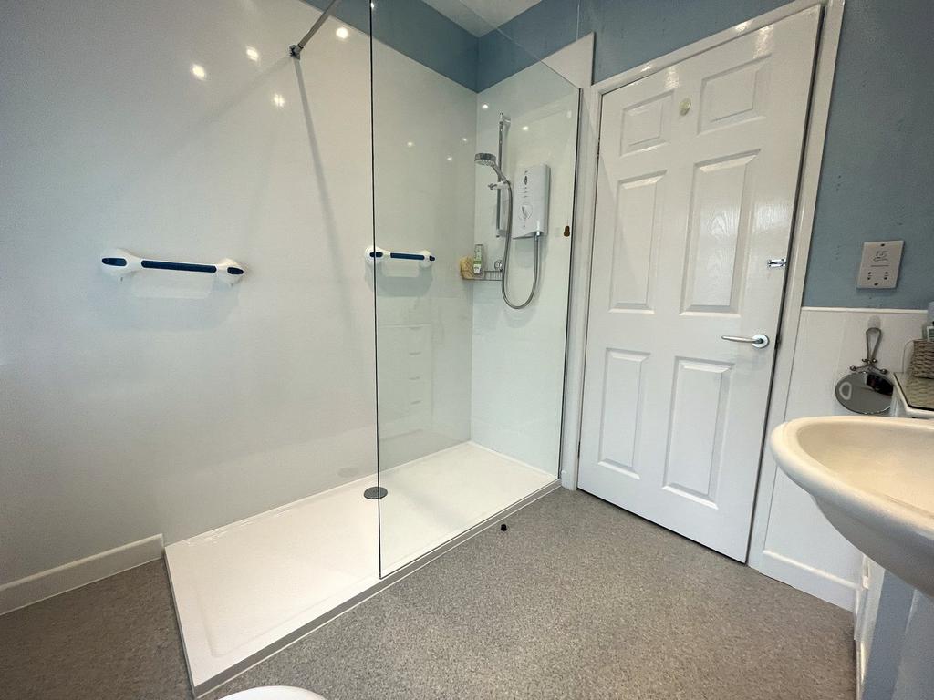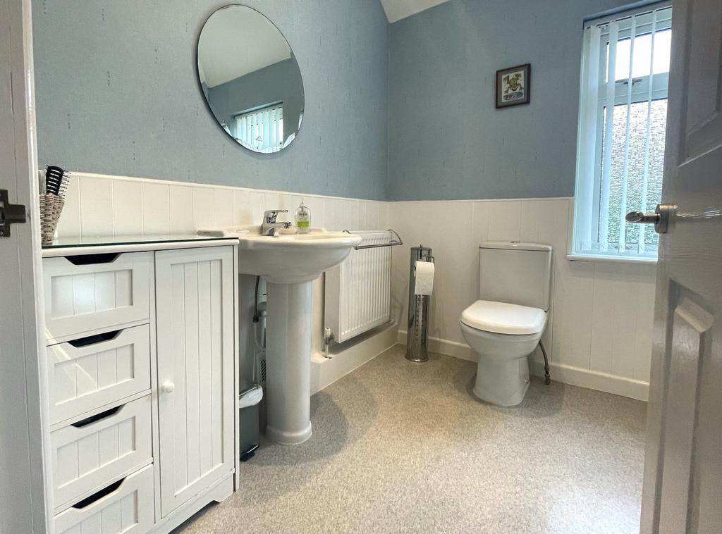 Obscure glazed window to rear. The shower room has been stylishly fitted with a white suite, comprising; close coupled WC with co-ordinating seat, pedestal wash hand basin with chrome mixer tap. Walk in shower, fitted with a Mira sport electric shower. Radiator.