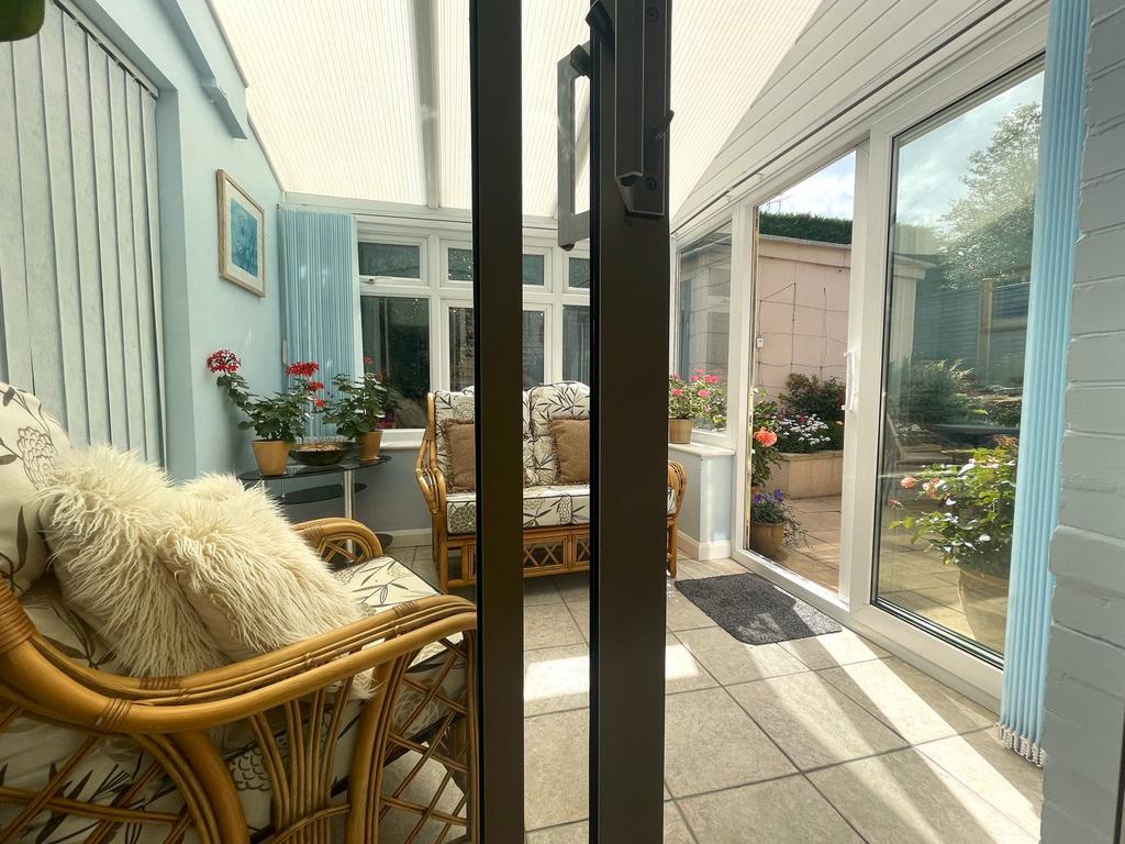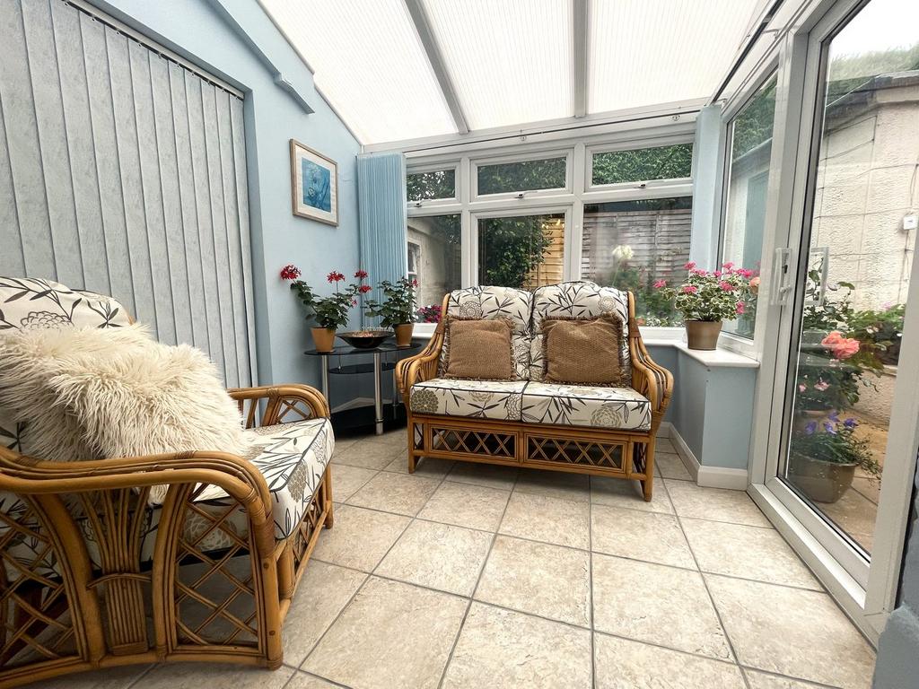 Glazed to two sides with a sliding door providing access to the rear garden. Ceramic tiled floor. Utility area with space and plumbing for washing machine, space for tumble dryer and wall mounted gas fired boiler for central heating and hot water.