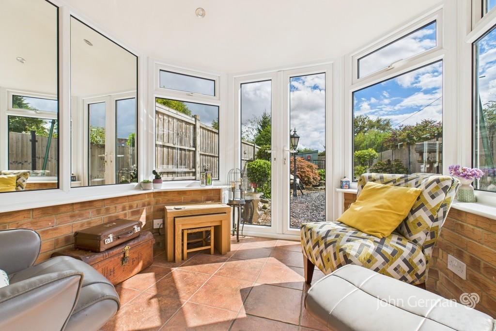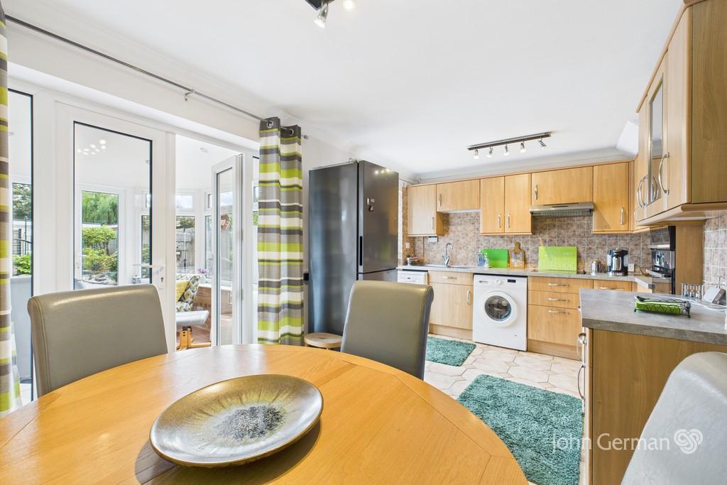The kitchen diner flows into a sun room overlooking the rear garden, providing a lovely spot to relax or entertain.