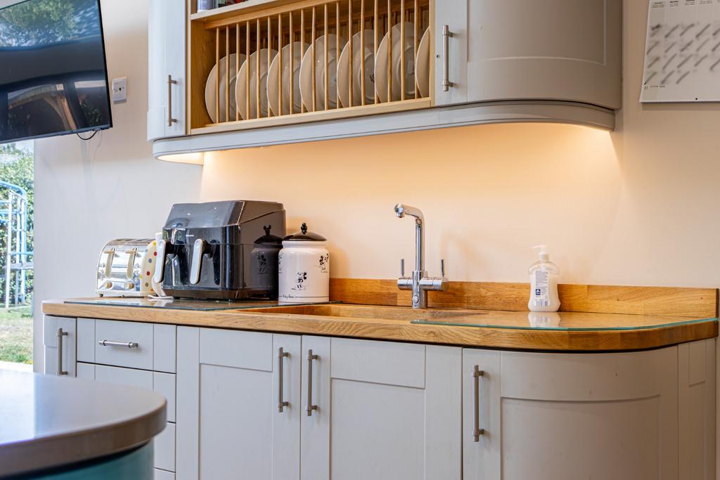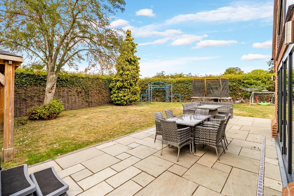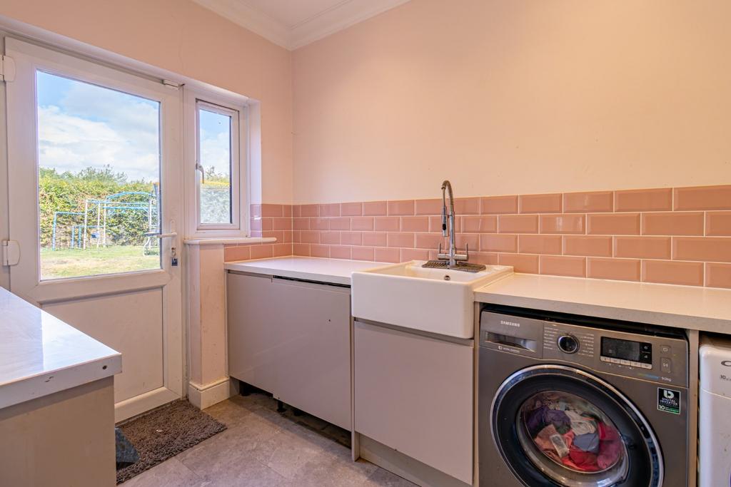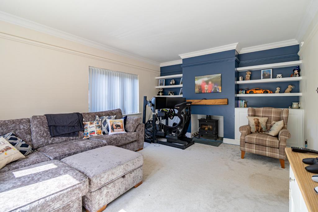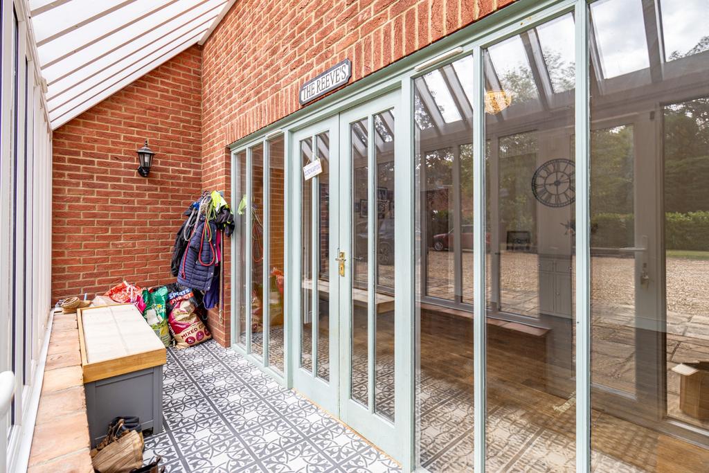 The property is entered via a welcoming entrance porch, a bright space thanks to the abundance of glazing, and an ideal spot to leave coats and shoes before stepping into the main part of the home. The first room you encounter is the spacious reception hall, which provides access to all areas of the accommodation and sets the tone for the space and style found throughout. Located at the rear of the home is the highly impressive kitchen/dining/living room, situated within the extension. This open-plan space serves as the true hub of the home, offering a superb setting for both everyday family life and entertaining guests. The kitchen is fitted with a range of contemporary shaker-style units, complemented by a contrasting central island with breakfast bar, perfect for casual dining. There is ample space for all essential appliances, along with an integrated microwave, warming drawer, and a boiling water tap for added convenience. At the opposite end of the room, the living and dining area is bright and inviting, enhanced by high vaulted ceilings, floor-to-ceiling glazing, and a combination of bi-fold and sliding doors that open out onto the patio, seamlessly connecting indoor and outdoor living. Conveniently located next to the kitchen is a practical utility room, providing additional storage and plumbing for laundry appliances. Positioned towards the front of the home is the wonderful dual-aspect sitting room, offering a more private space to relax. This room is enhanced by a charming log burner, French doors leading to the front garden, and attractive picture rail lighting.