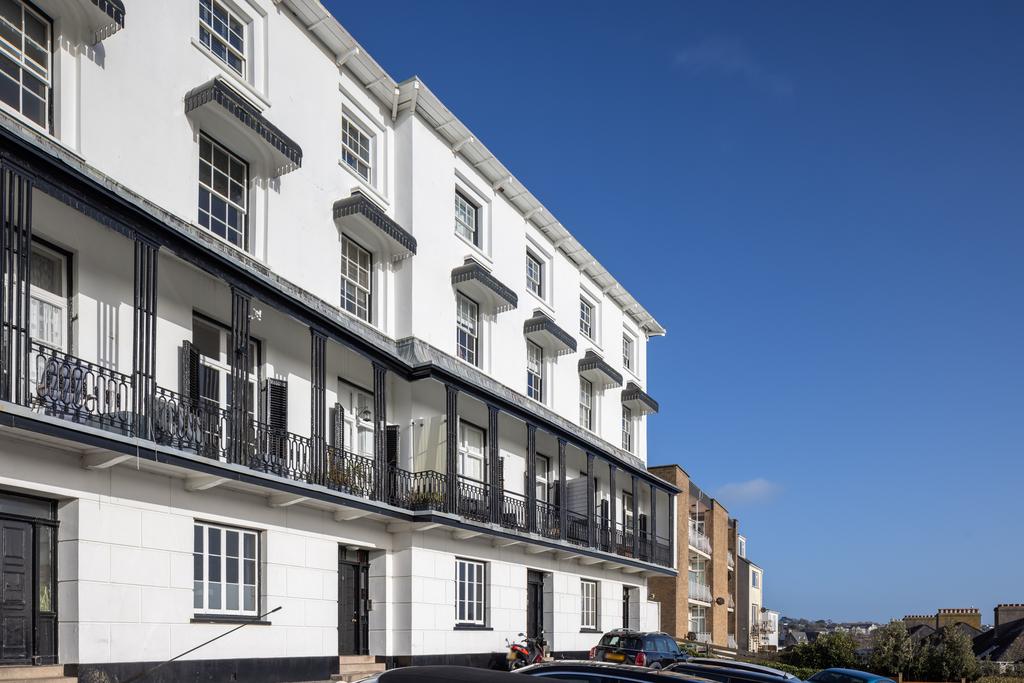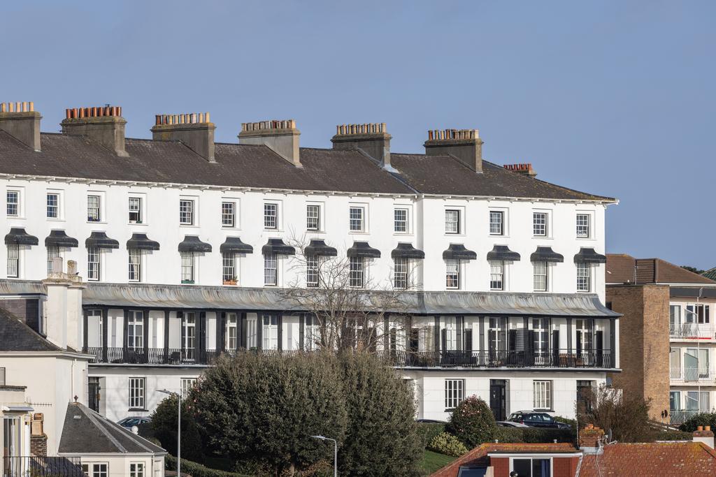 Nestled within the prestigious Almorah Crescent, this remarkable property is a testament to grandeur and historical significance. Built in 1845, this regal terrace boasts charm and distinction on the fringe of St. Helier with rooftop panoramas and town vistas. Beyond its imposing facade lies a spacious first floor apartment with an interior adorned with high ceilings and elegant finishes. Comprising a recently installed bathroom, a well-appointed kitchen/breakfast room with arched double doors opening in to a sitting/dining room and double bedroom - both with access to a west-facing private balcony. There's also the added benefit of an internal storage space.