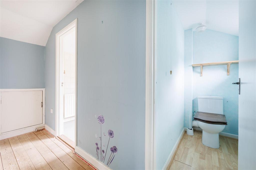 Upstairs, the first floor opens onto a spacious and versatile landing area, which could be used as a home office, study space, or a quiet reading nook. A well-appointed family bathroom, fitted with quality fixtures and designed with comfort in mind, serves the upstairs bedrooms. Two generously sized double bedrooms offer pleasant views over the surrounding grounds and come with ample built-in storage. In addition, a separate WC provides further convenience on this level.