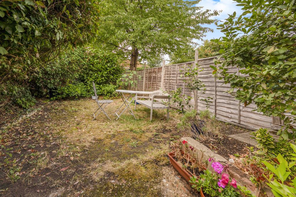 Positioned on the ground floor with its own private entrance, the property welcomes you into a spacious bedroom at the front — flooded with natural light — which could also be used as a lounge if desired. Towards the rear, a cosy reception room opens directly onto a private side garden, creating the perfect spot for relaxing or entertaining. A few steps lead up to a further section of private garden, currently open but with the potential to be fenced off for added seclusion.