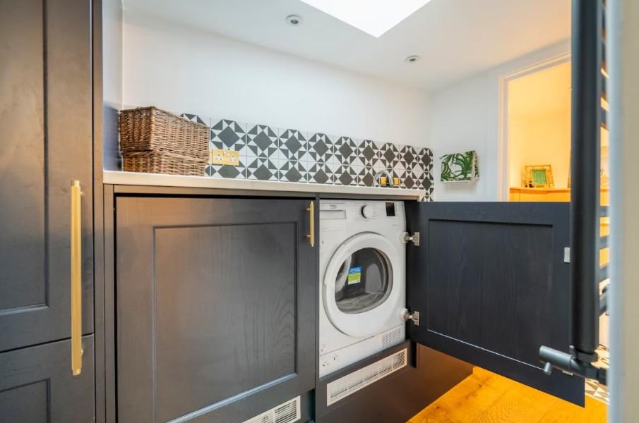 Downstairs is the beautiful kitchen and family room with 3 rooms that can be used for multiple use off it. Currently used as a gym and utility rooms.