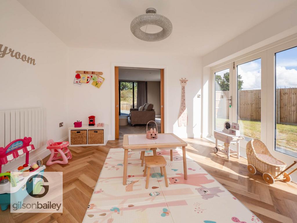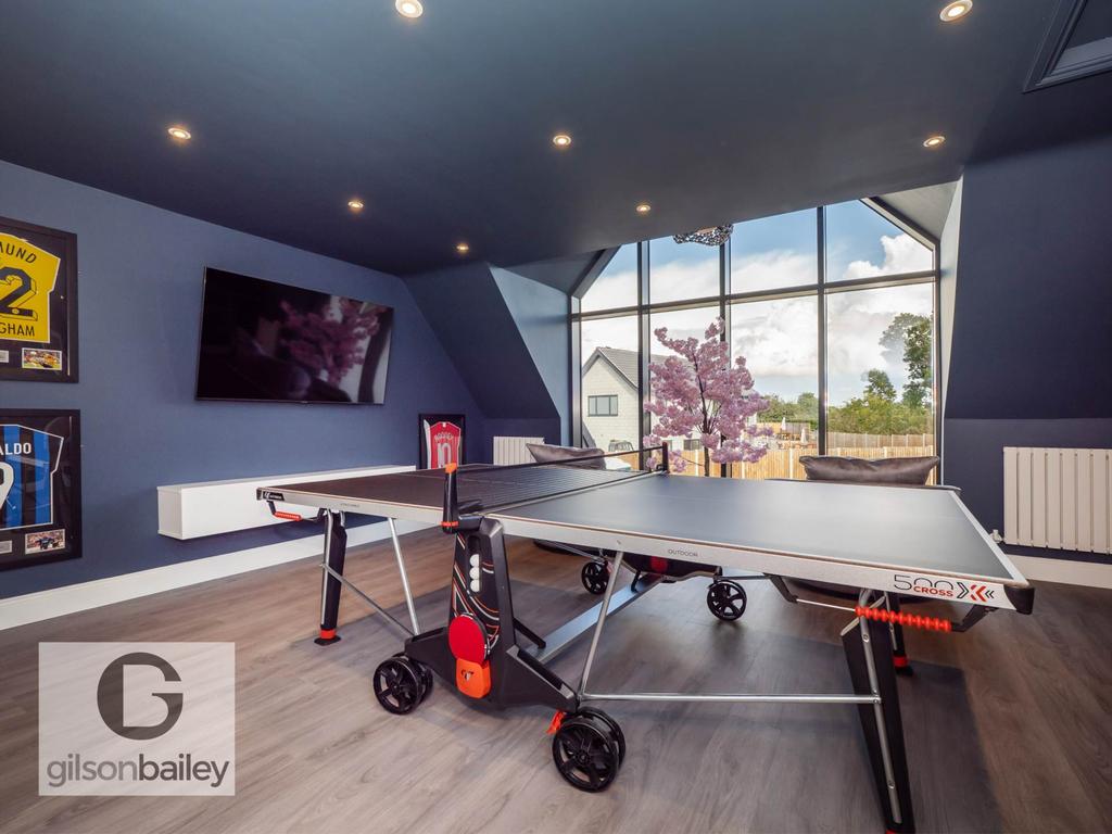 The dedicated games room with a striking large windows is ideal for leisure and entertainment.