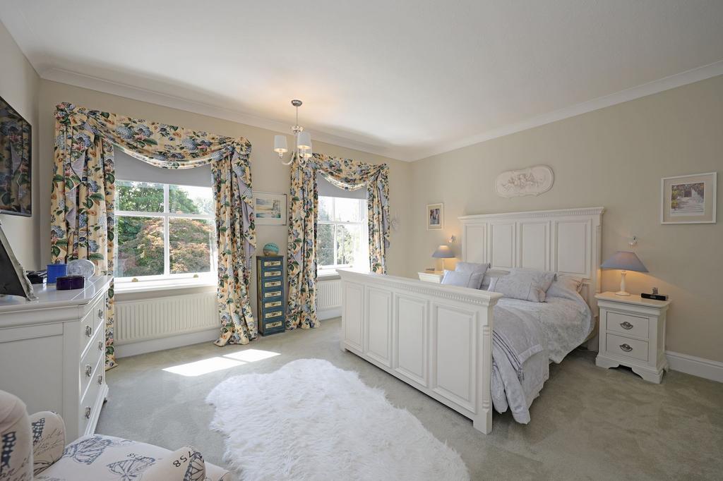 On the first floor, a landing opens to a large area having attractive outlook over the rear garden/paddock and rural landscape beyond. It currently provides a study area, with the possibility for future conversion into an another bedroom if required. This landing area leads to the master bedroom suite with twin sash windows enjoying views to the front. There is a fully equipped ensuite bathroom which Incorporates an inset bath with mirror surround, enclosed shower cubicle, W.C and a wash basin with marble top and vanity mirror. Beyond the bathroom is a large dressing room/potential nursery bedroom enjoying further garden and rural views and fully fitted with a range of wardrobe/cupboard and shelving units. There are two further large family double bedrooms also having sash window outlook across the front garden with ornate original cast iron Victorian fireplaces. A separate spacious family bathroom is fitted with a four piece suite which includes bath and a separate shower cubicle.