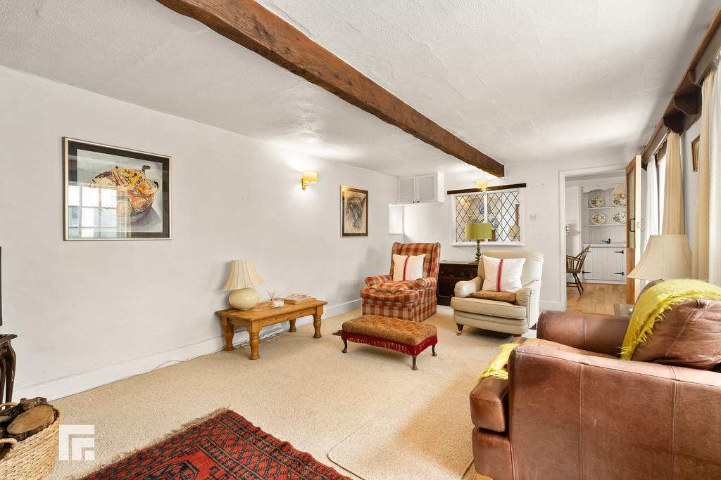 LOUNGE 17' 10" x 12' 1" (5.45m x 3.69m) Feature open fireplace with exposed stone chimney stack, wood mantle and flagstone hearth. Beamed ceiling. Window to front and side plus two double glazed windows to rear. Two radiators. Glazed door to kitchen/dining room.