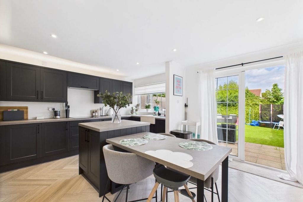 On the ground floor you will find a spacious lounge which leads through into a beautifully newly fitted kitchen, complete with a centre Island and breakfast bar. From the kitchen double doors lead out onto the low maintenance garden currently laid with artificial lawn. Also contained on the ground floor is a toilet and a separate utility room.