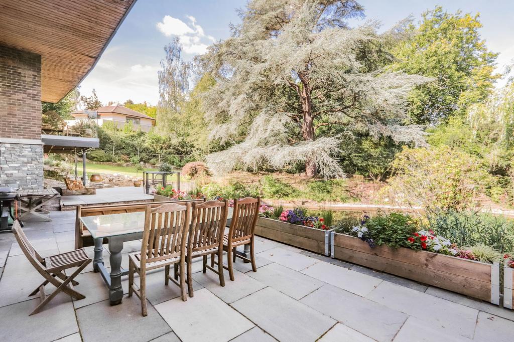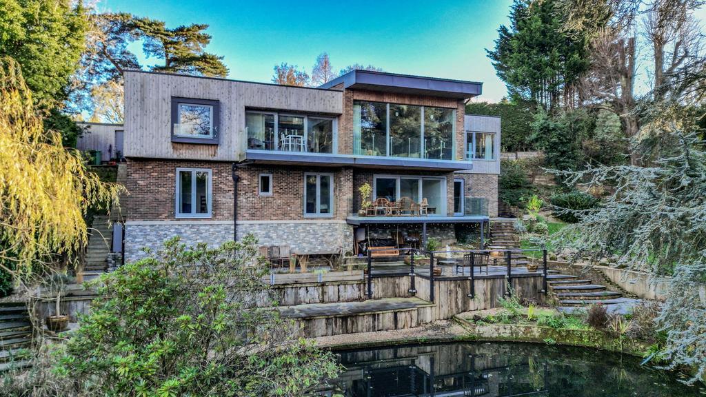The staggered rear garden has been thoughtfully landscaped, with meandering footpaths weaving through a rich variety of flowers, shrubs, and mature planting. The journey leads down to the pond, creating a series of outdoor spaces to explore, entertain, or simply find a quiet corner to unwind.