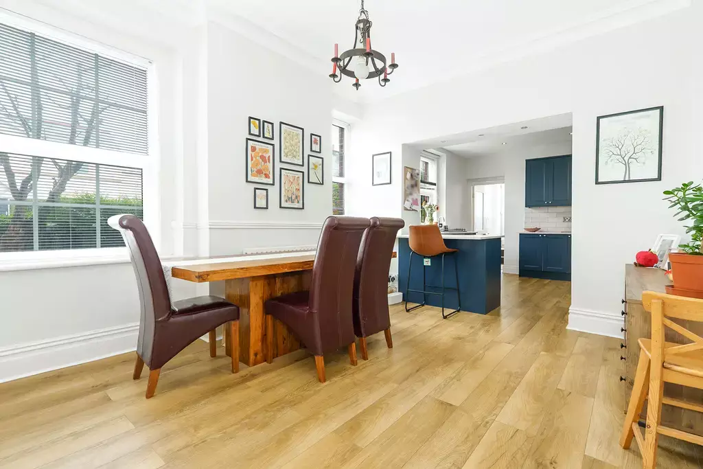 The welcoming accommodation begins with an entrance porch and elegant reception hallway, leading to a large ‘L-shaped’ living room with a striking square bay window. To the rear, a stunning newly fitted dining kitchen (2023) provides the heart of the home, complete with breakfast bar seating and a utility room off, which also benefits from a new oil boiler installed in 2023.